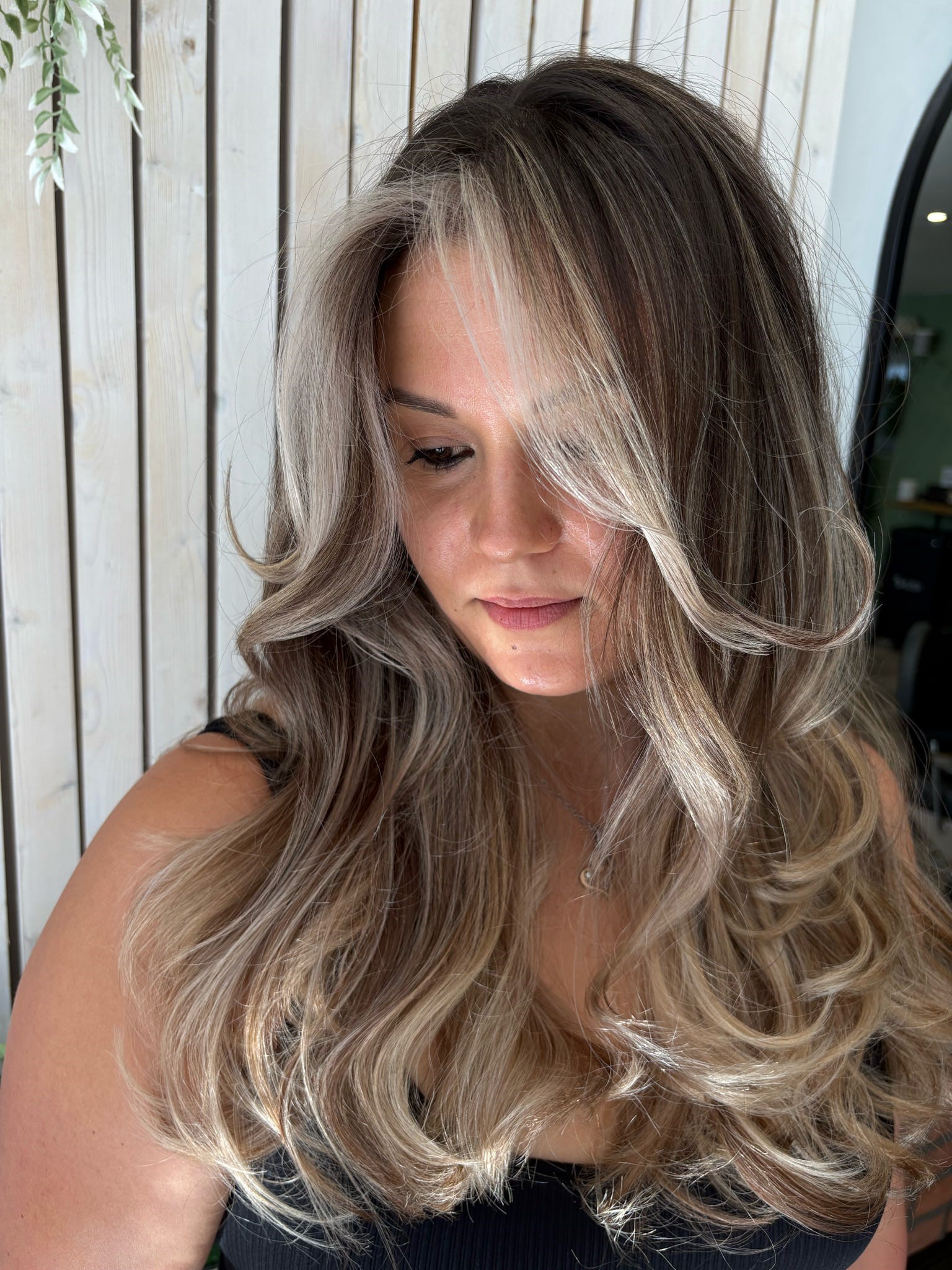 We do two services – (if you wanted to book online) Classic or Creative, Creative takes longer and involves colour onto the scalp or root drag, The classic is scattered through the hair and applied thicker on the ends but no colour in the root area.